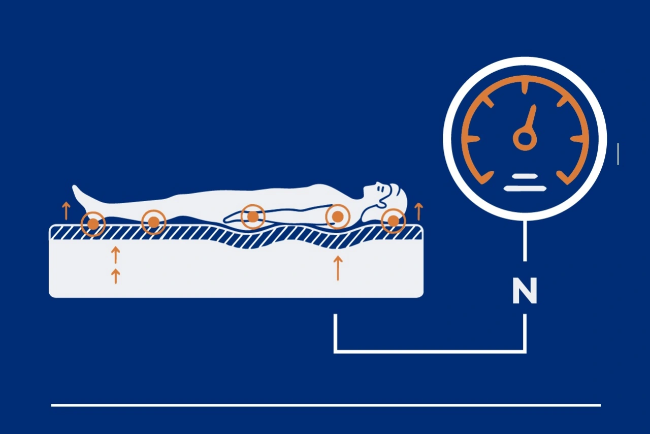 Poland is probably the only country dominated by a mattress firmness scale that has no official standard and is additionally based on the user?s body weight. It is commonly assumed that an H1 mattress is intended for users up to 60 kilograms, H2 for 50 to 80 kilograms, the popular H3 for 70 to 110 kilograms, and H4 for those above 100 kilograms. But what does that actually mean? In practice, nothing. The scale is not standardised, and defining foam firmness solely by body weight is neither scientifically sound nor methodologically correct. A good mattress should feature a well designed layered construction that ultimately results in one clearly defined firmness value expressed in newtons (N) and kilopascals (kPa). For side and back sleepers, as well as most stomach sleepers, the optimal firmness is around 120 to 125 newtons. Young, athletic stomach sleepers may prefer slightly higher firmness.