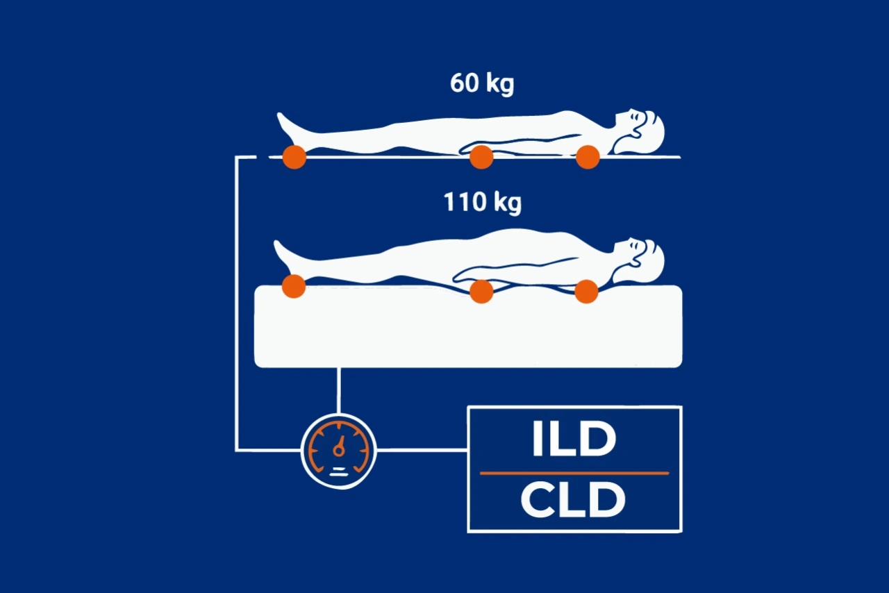 Choosing a mattress based on the H1-H4 scale and body weight is a marketing myth with no unified technical foundation. According to the physical formula for pressure p = F/S, in individuals with higher body mass the force is distributed across a proportionally larger contact area. This means that the unit pressure does not automatically increase dramatically. Instead of relying on arbitrary H labels, one should consider the ILD parameter measured in newtons, which objectively defines the force required to compress the foam. For 97 percent of the population, a firmness of around 120 to 125 newtons, approximately 6.5 on a 1 to 10 scale, is the optimal and health oriented solution. It ensures proper body contouring and spinal support without the harmful sensation of sleeping on a board. As always, the entire mattress design must be taken into account.